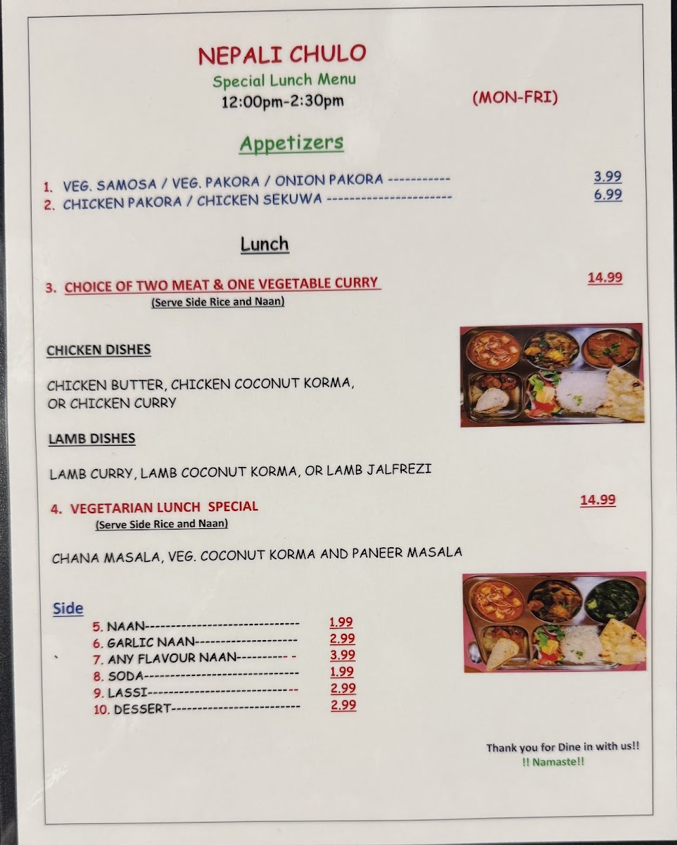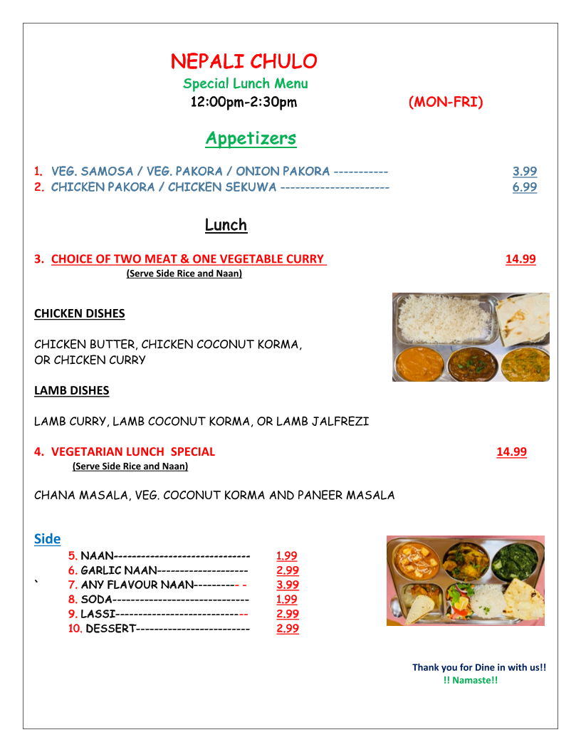 Non- Vegetarian Lunch Special (MON-FRI)