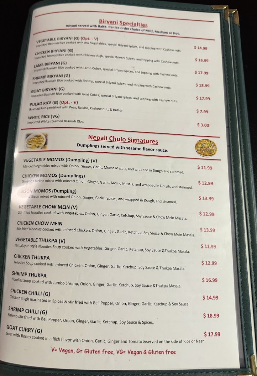 (Dumpling) Ground Chicken mixed with minced Onions, Ginger, Garlic, Momo Masala & wrapped in Dough and steamed.